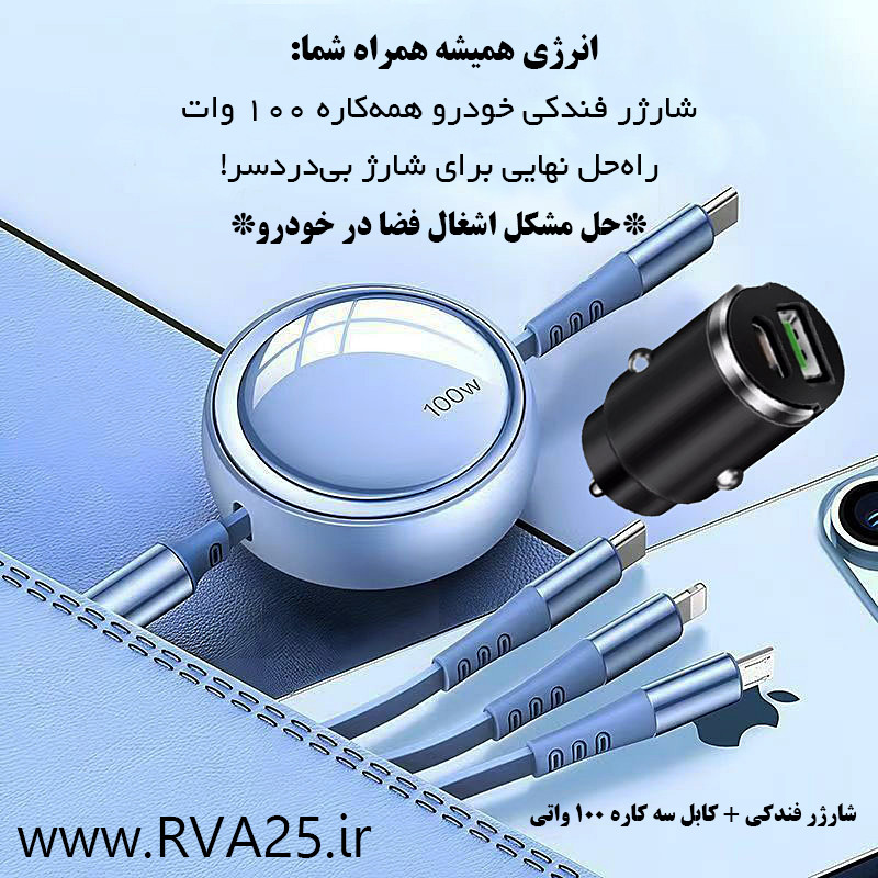نام محصول: شارژر فندکی سه کاره 100 وات + فندکی ماشین