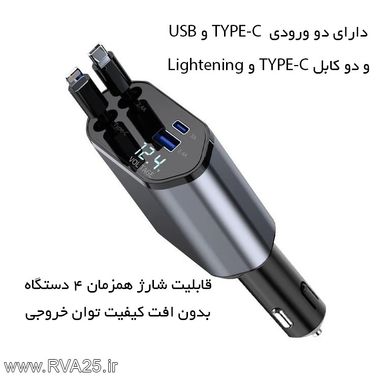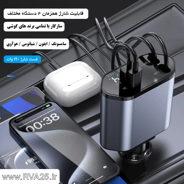 شارژر فندکی خودرو 120 وات مدل ML-102 با چهار پورت | فست سریع